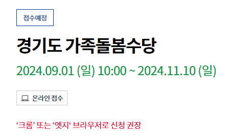 ▶ 경기도 조부모 돌봄수당 신청 방법은 경기도 민원 24 홈페이지 or 해당 주소지 관할 행복복지센터에 방문하여